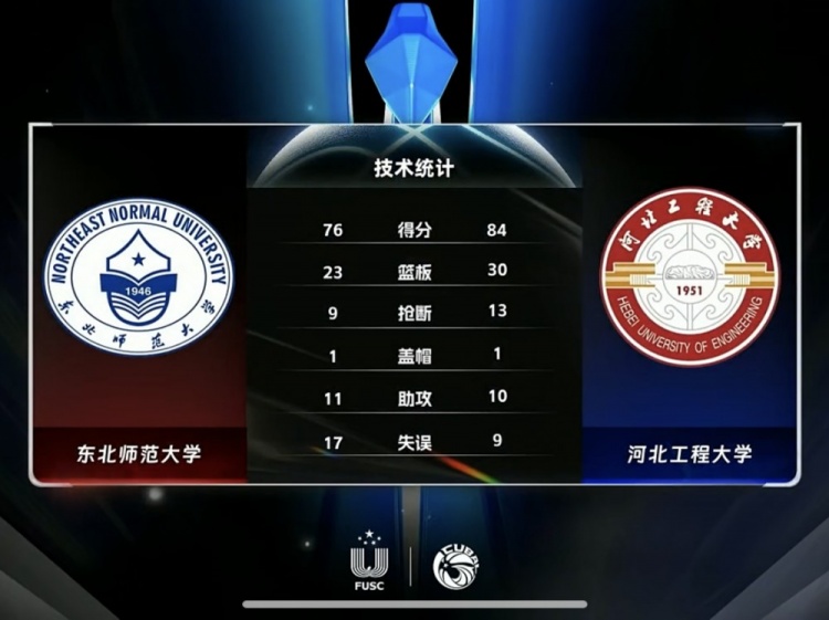 末节决战,霍腾上来就干拔三分命中拉开近30分的领先,杨旭琦篮下脚步后外线飙中三分止血,张嘉特三分再进继续追分,张磊强突上篮打进后东北师大追至20分以内分差,霍腾欧洲步中投止血,张嘉特补篮加反击追到个位数分差但无奈时间所剩无几,张嘉特压哨三分再进,最终河北工程84-76战胜东北师大拿到首胜。