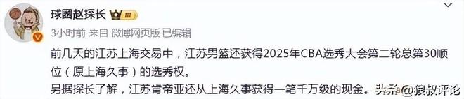 此前,根据媒体人赵探长报道,江苏男篮送走崔晓龙的交易当中,获得了一笔千万级别的转会费。