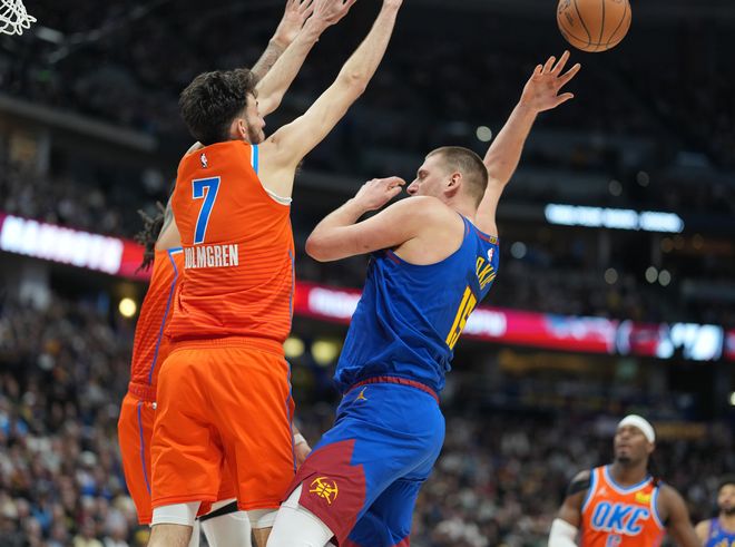 次节两队依旧是攻防大战,只可惜约基奇还是没有进入状态单节就1个出手,没错约基奇上半场就出手两次拿6分6助攻,说他是为了串联全队也可以说他是毫无战意也行,反正MVP的PK亚历山大是更胜一筹的,上半场SGA拿到15分7助攻,SGA的数据是全包围约基奇。