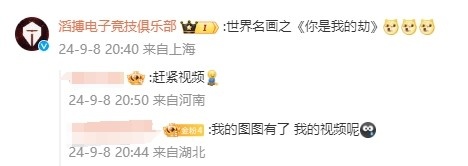 9月8日讯 今日TES中野组合Creme、Tian同一时间更新微博晒合照,其中Tian疑似小游戏输了被番茄酱糊脸。