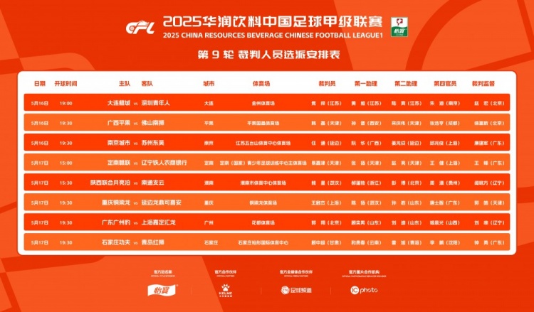 中甲第9轮裁判: